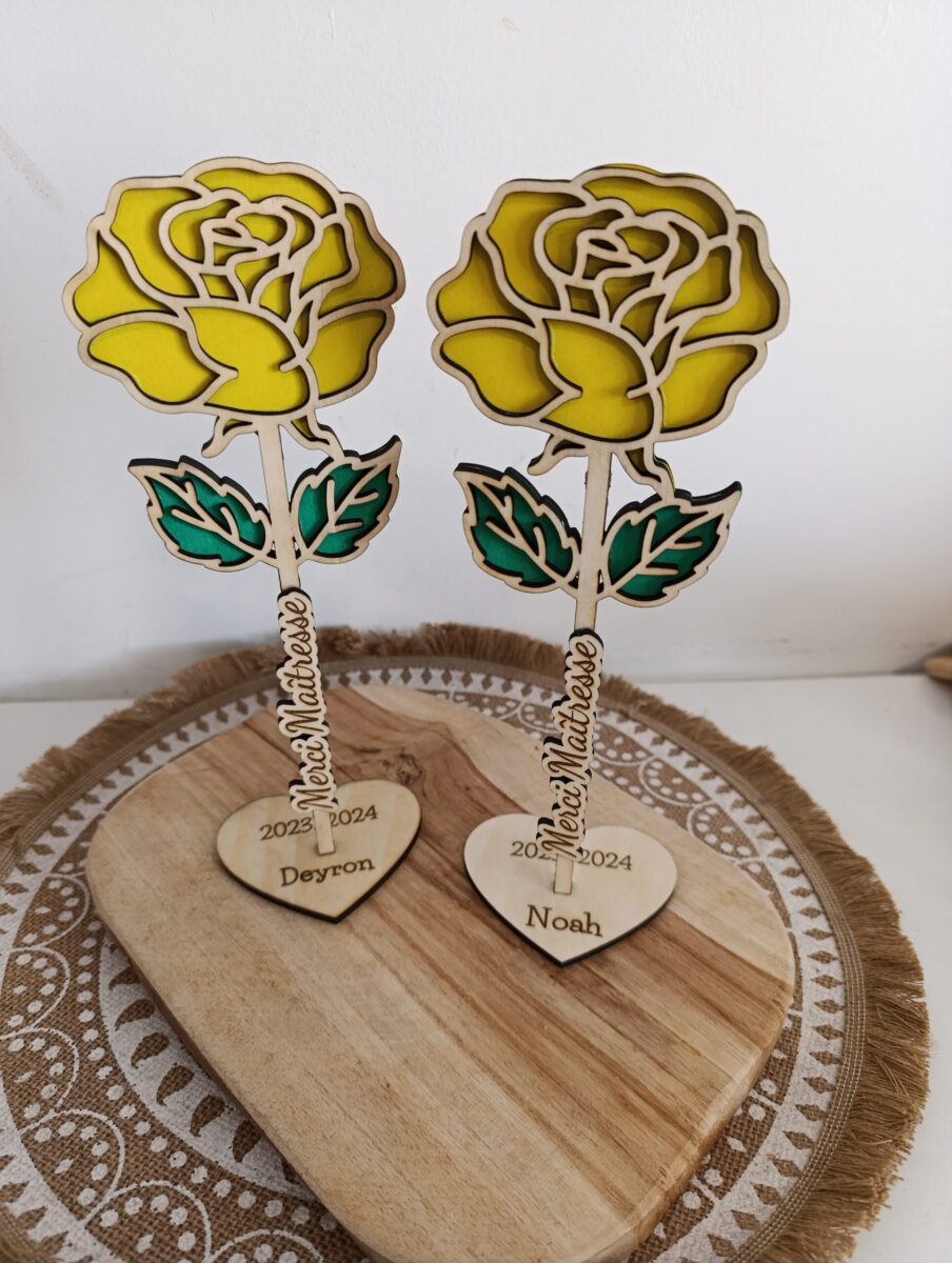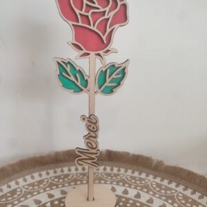 Retrouvez nos jolies roses en bois a offrir avec le texte de votre choix