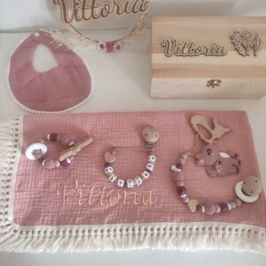 – un bavoir double gaze brodé